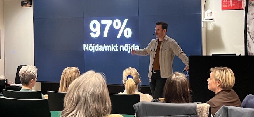 Tobias Lundquist berättar att deltagarna på kompetensutvecklingsaktiviteter är nöjda. 97% är nöjda eller mycket nöja.